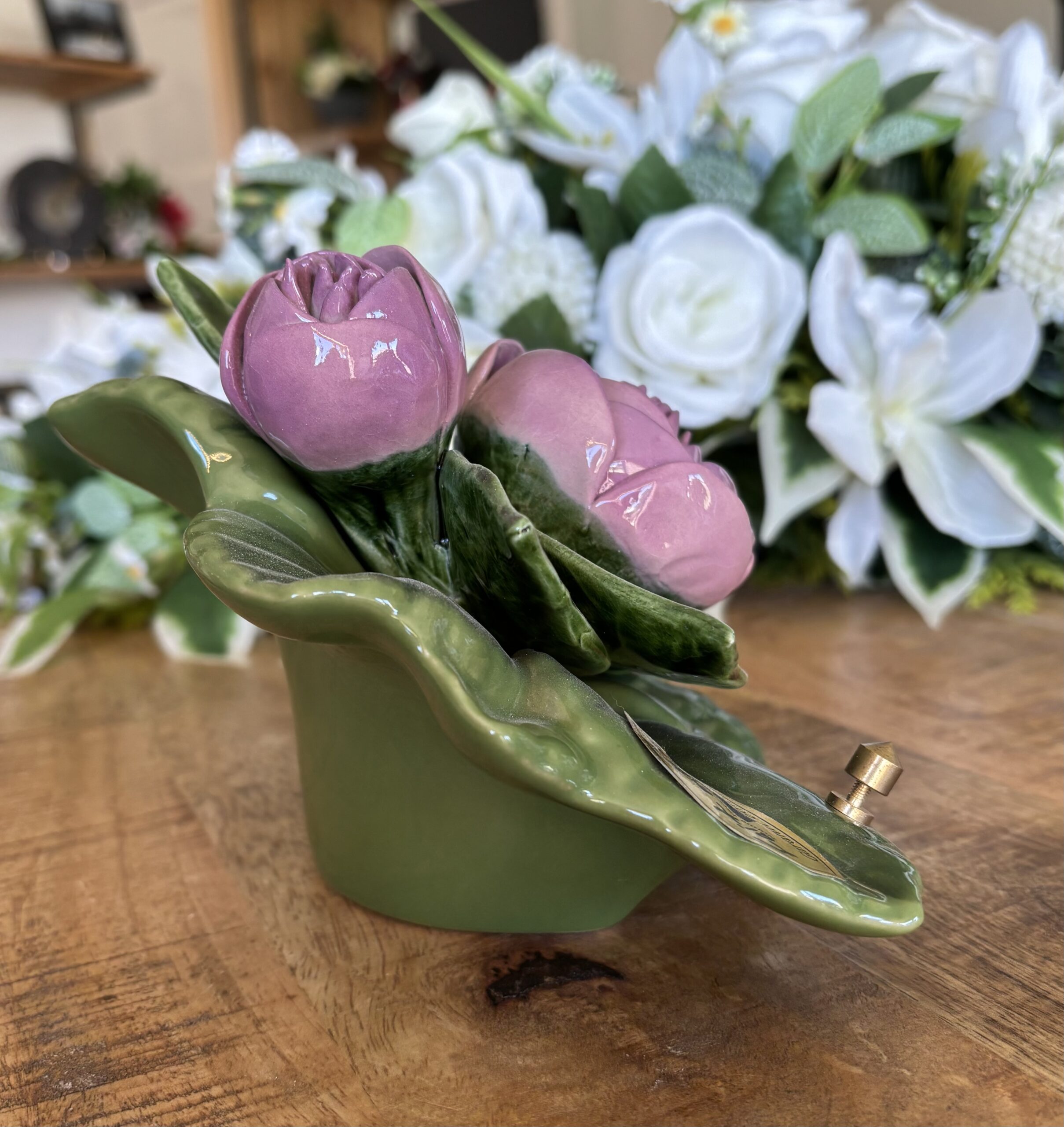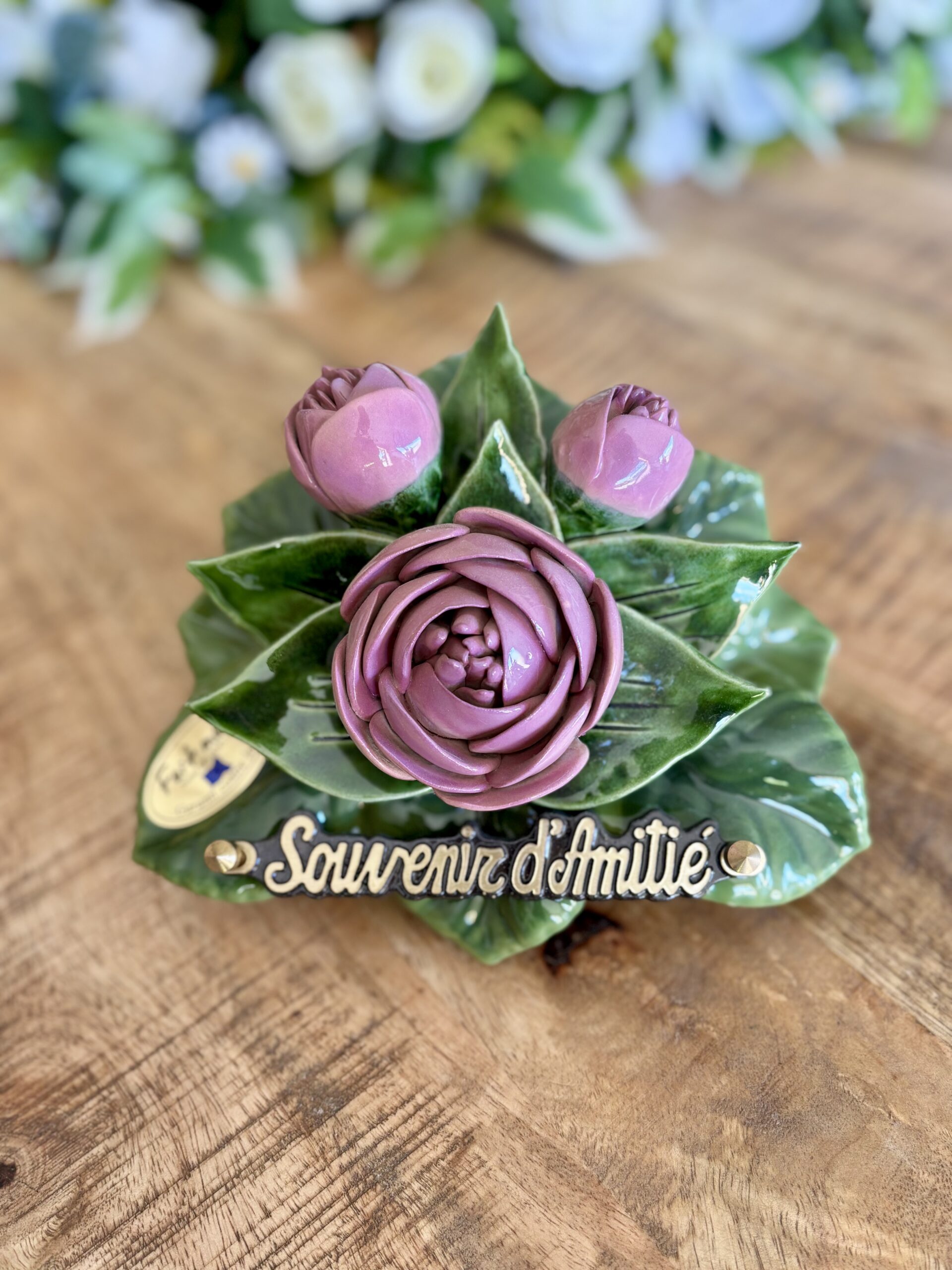 Accueil / Boutique / Croissant de pivoines en céramique – Hommage funéraire artisanal français